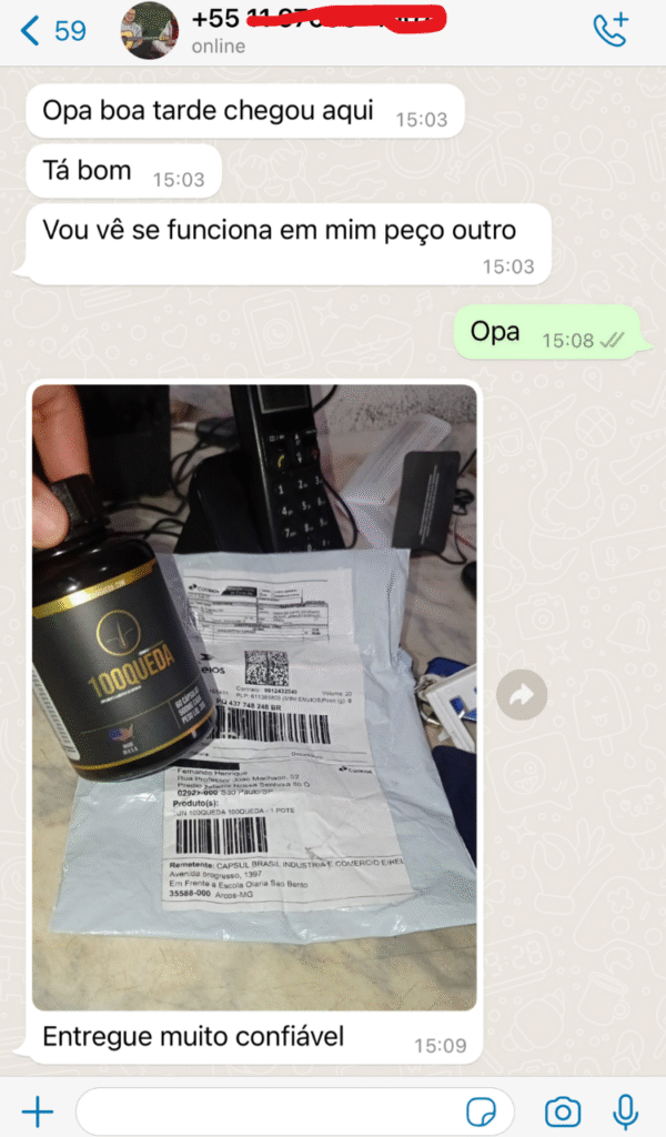 O cliente deve tirar uma selfie antes de iniciar o tratamento de 90 dias (3 potes) do Seca 100QUEDA e a selfie deve conter a data. Após terminar de tomar os 3 potes deve ser tirada outra selfie com data provando que passou os 90 dias e os 3 potes devem estar vazios.